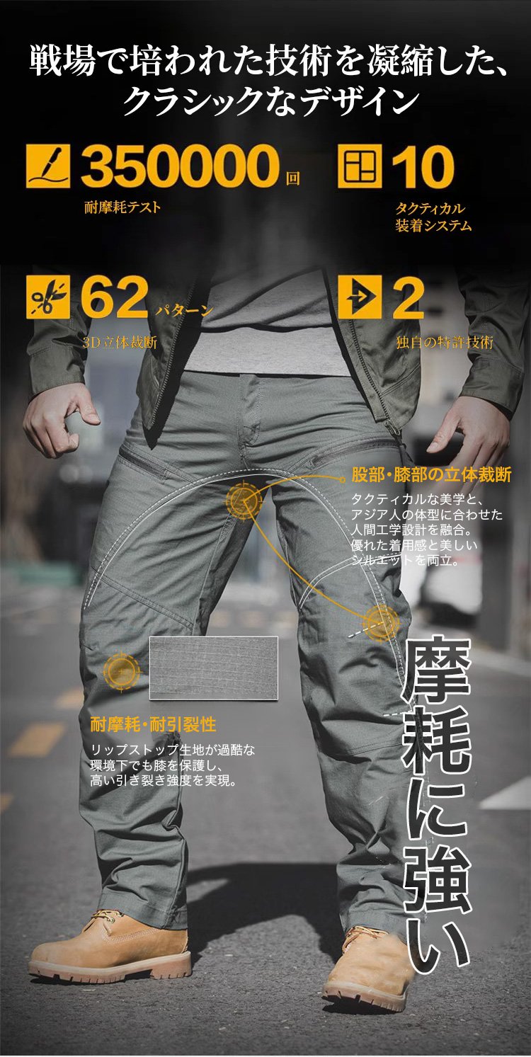 超強防水耐磨3Dムービング・タクティカルパンツ