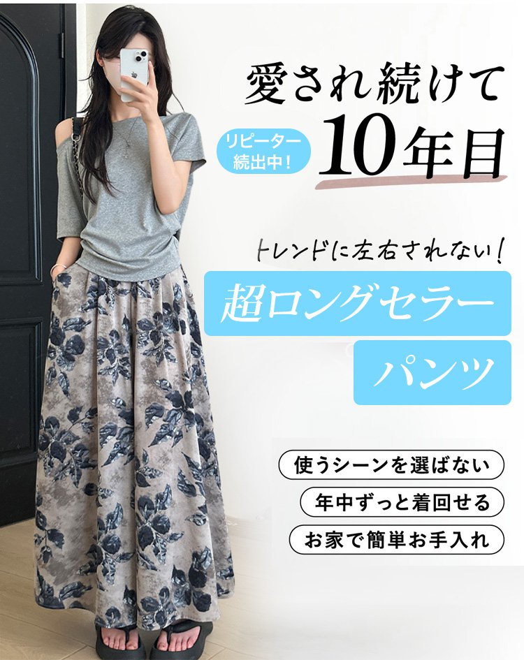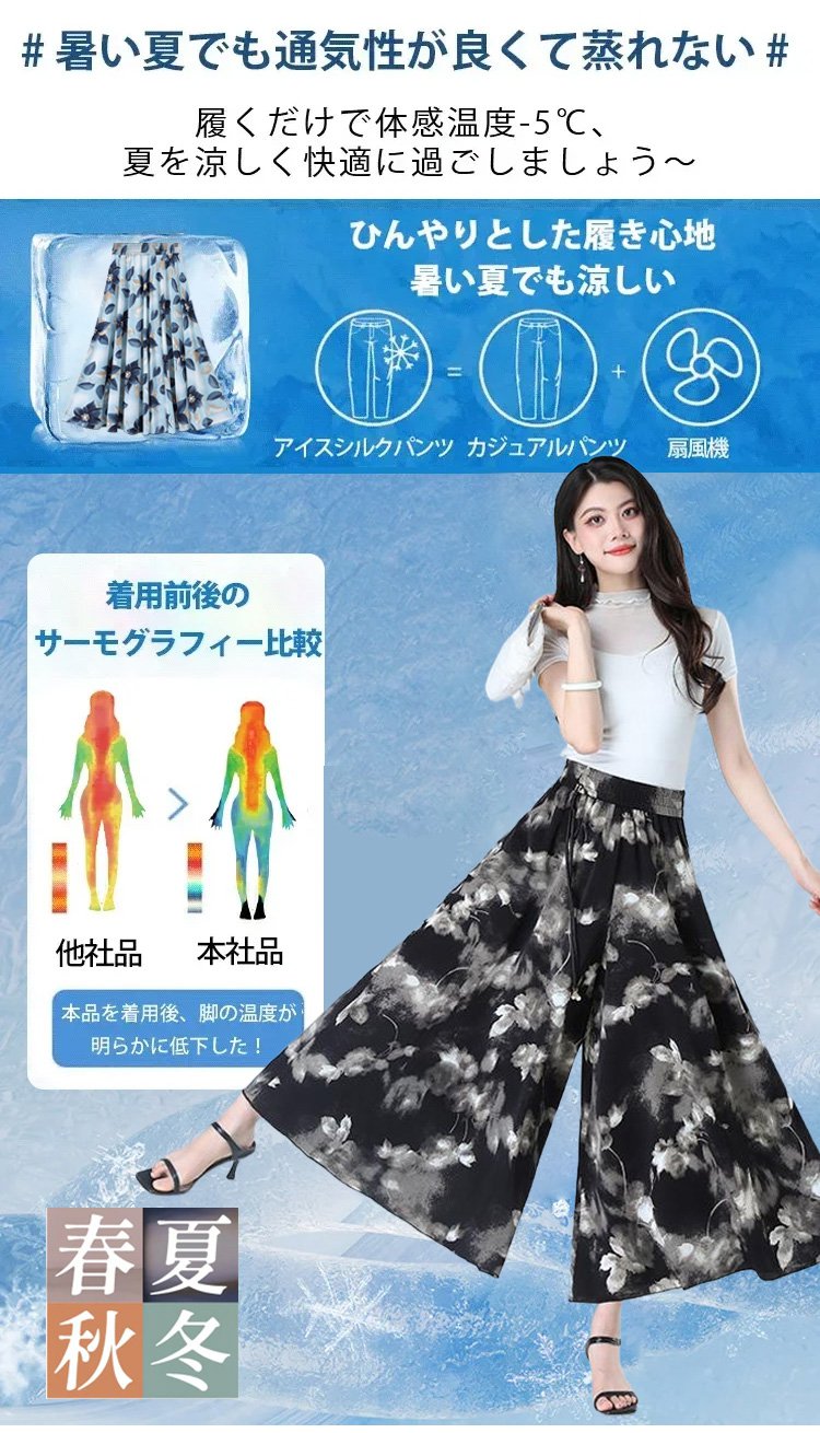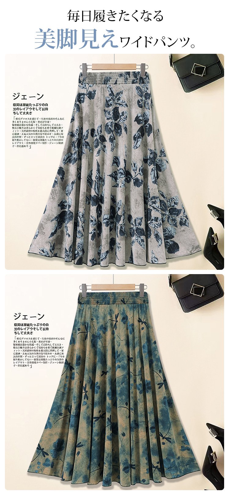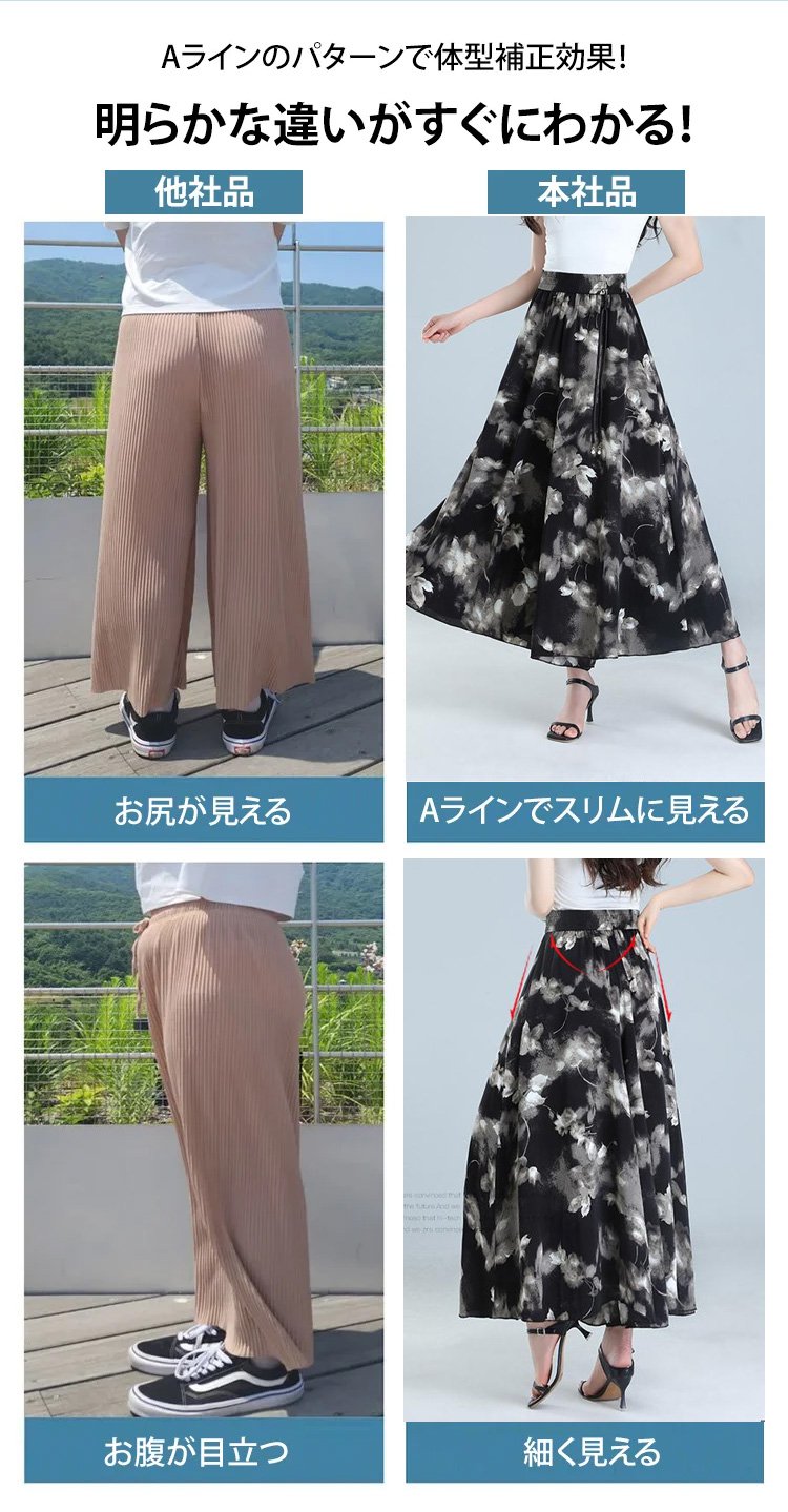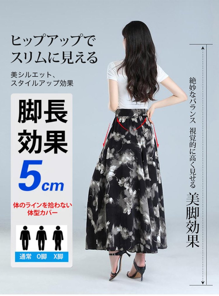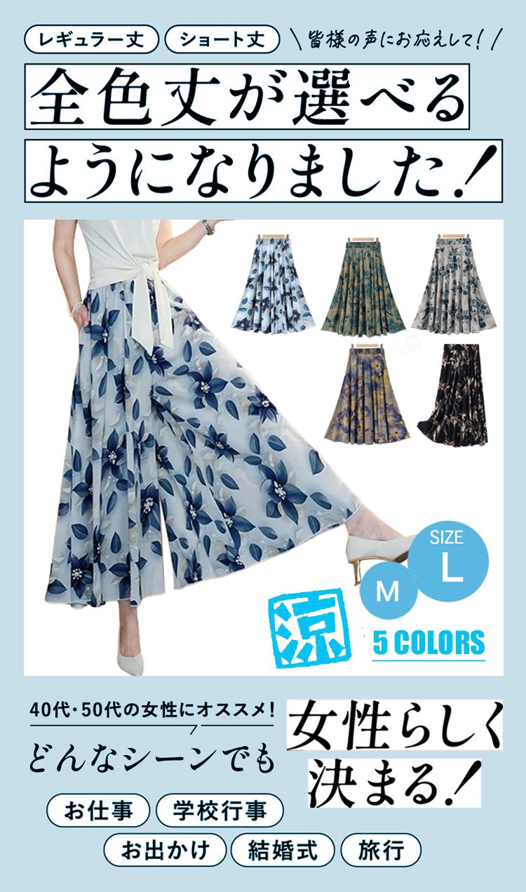 シルクフラワー柄スカートパンツ