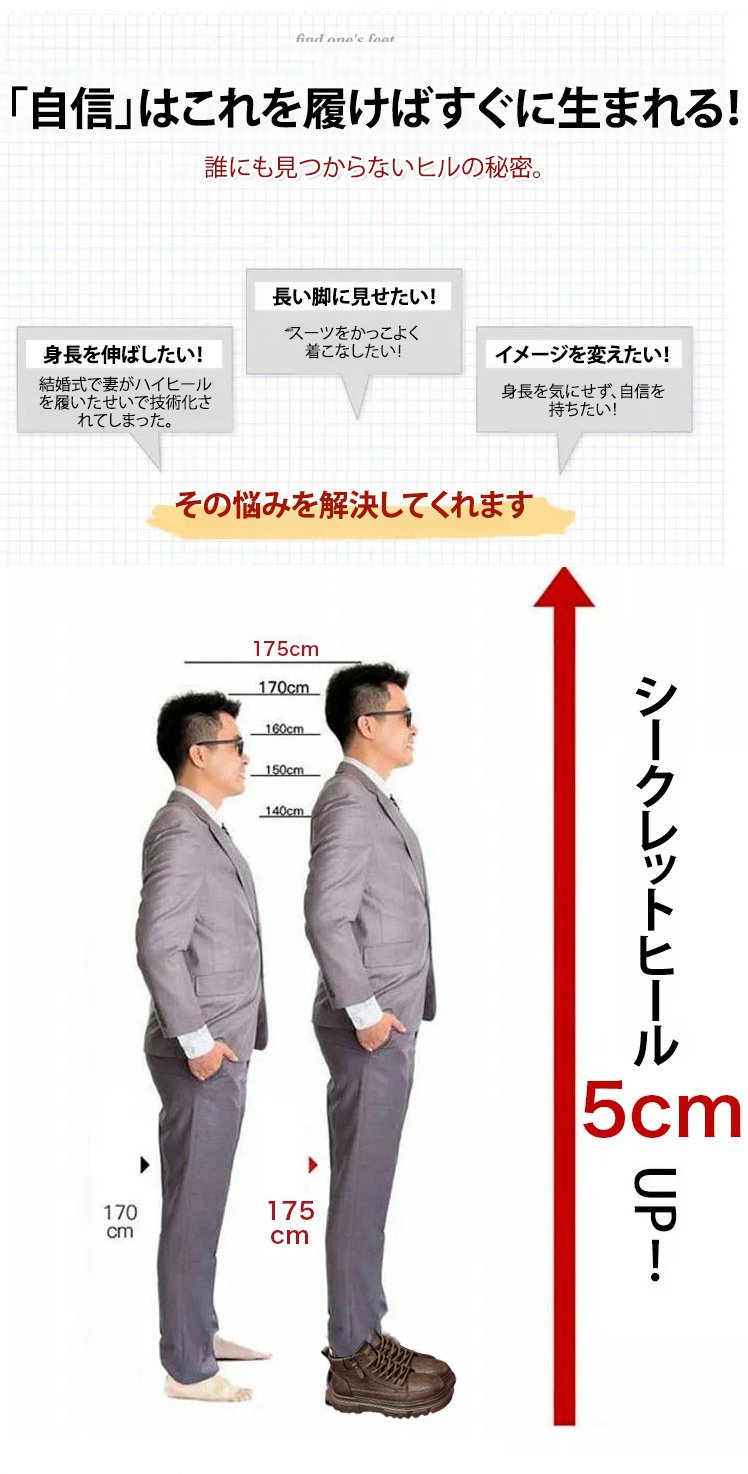 履くと5cmアップ、快適で蒸れず、靴擦れしません。