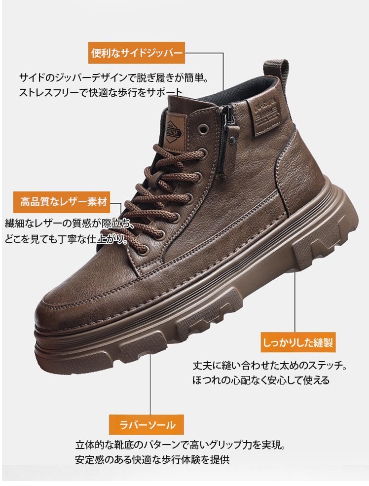 【レースレス・サイドジッパー】メンズカジュアルシューズ