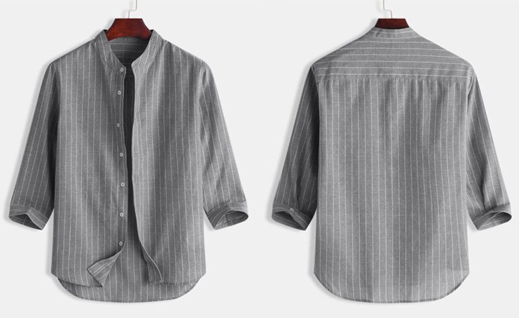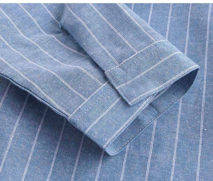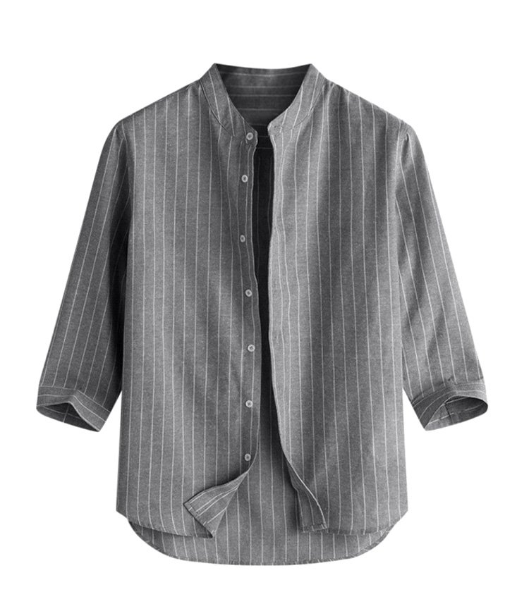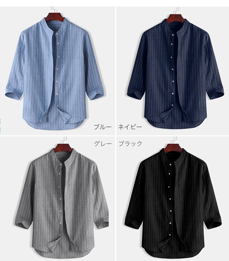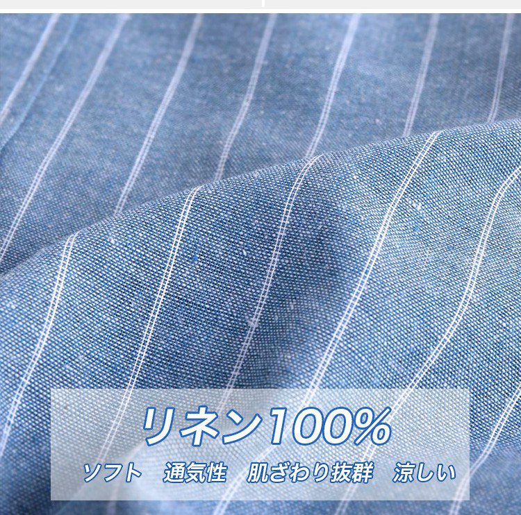 【ストライプリネンシャツ】7分袖 リネン100% ソフト 通気性 肌ざわり抜群 涼しい