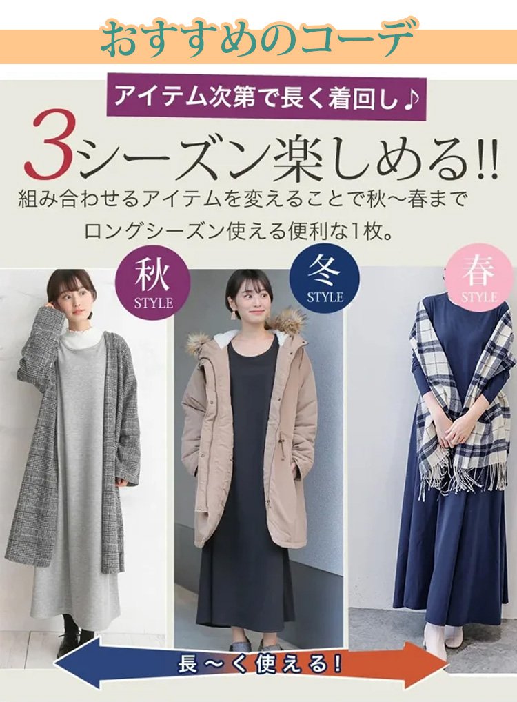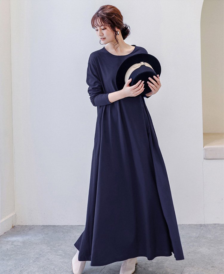 ゆったりとした長袖ロング無地ワンピース