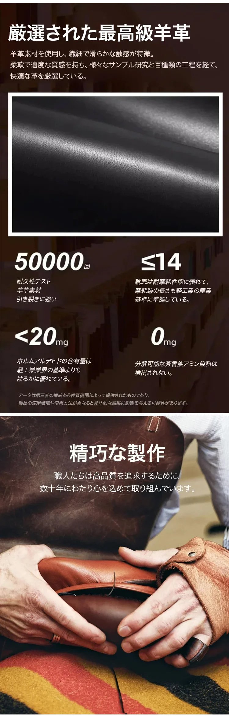 栃木県産の高品質レザーを使用し、カッティングから縫製まで、30年以上の経験を持つ職人が手作業で丁寧に仕上げております。履き心地は柔らかく、通気性にも優れています。新作は発売から1週間で販売ランキング1位を獲得!本日限定の特別価格セール中。14日間無料でお試し履き可能、ご満足いただけない場合は全額返金いたします。在庫は残りわずか85足のみ。お早めにお買い求めください!