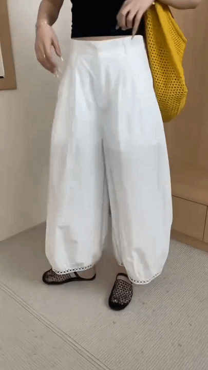 透かしレース無地ランタンパンツ