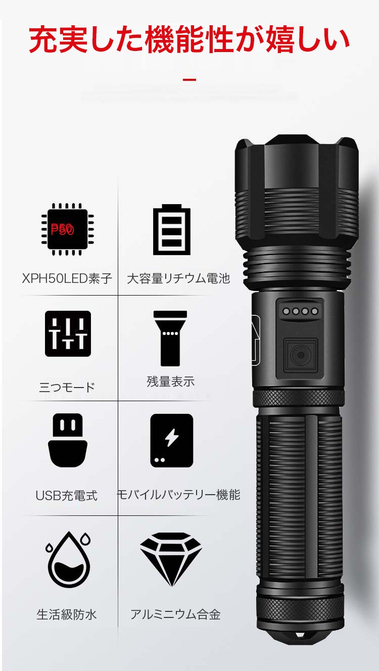 多機能ズーム式LED懐中電灯
