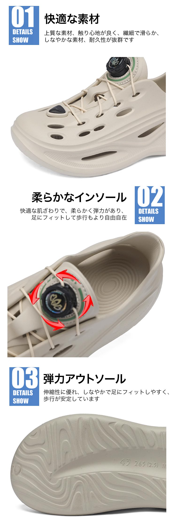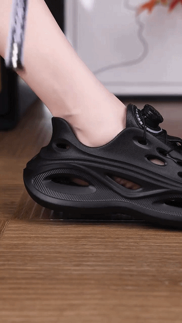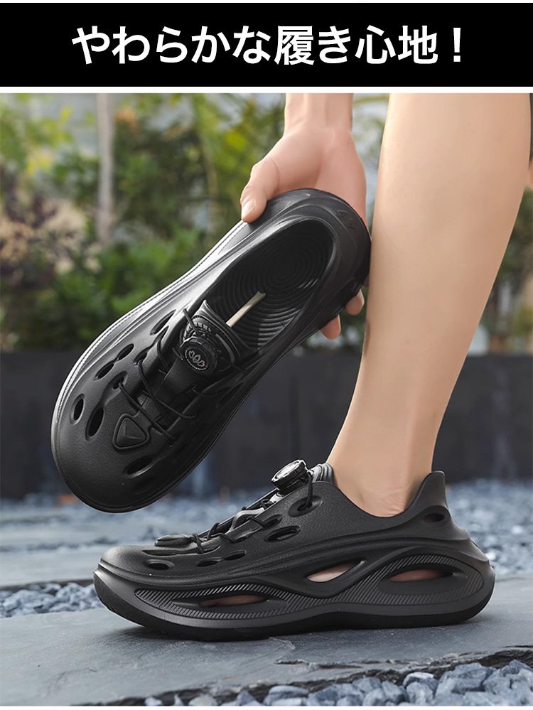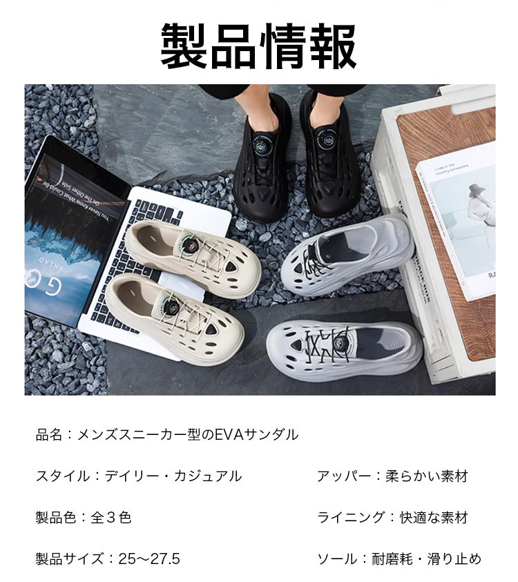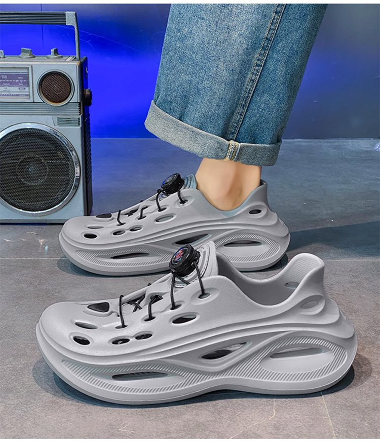 【レースフリー】回転ボタンの靴紐付きメンズスニーカー型のEVAサンダル