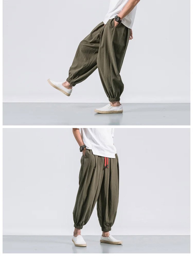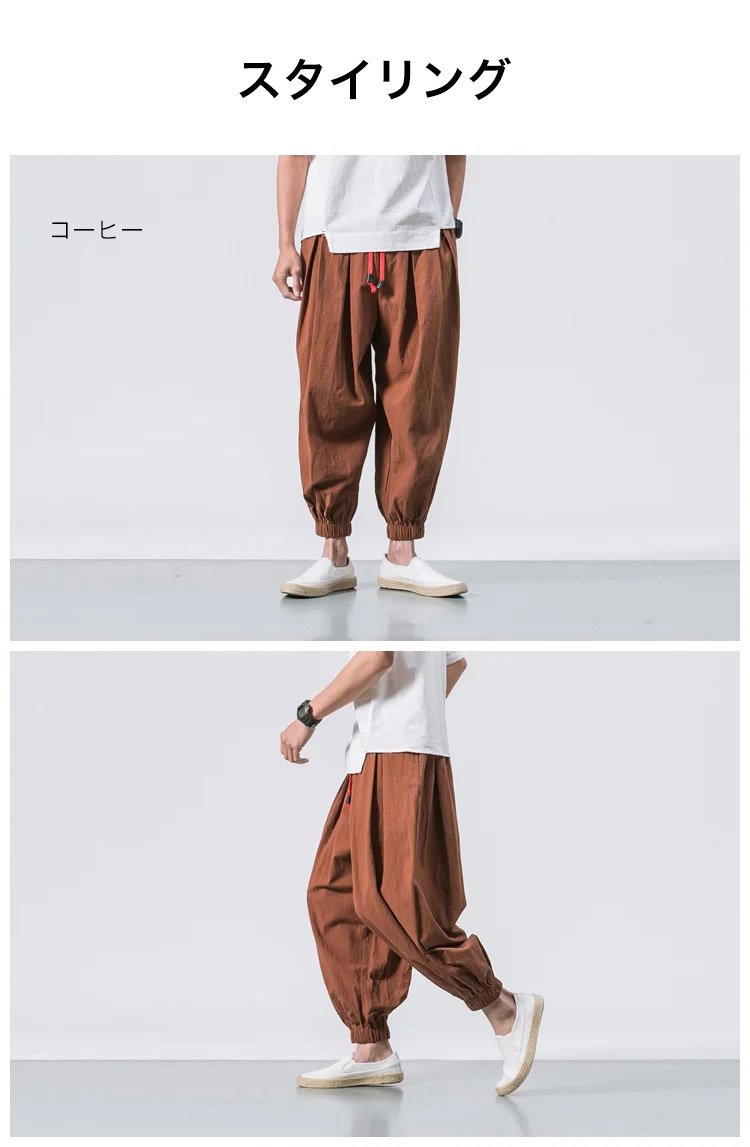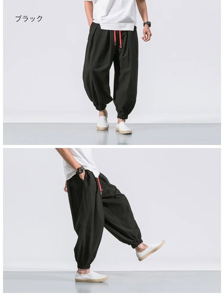 シンプルな無地設計、通気性高く履き心地快適、ゴム入り裾、ゆるめシルエットで様々な体型に対応