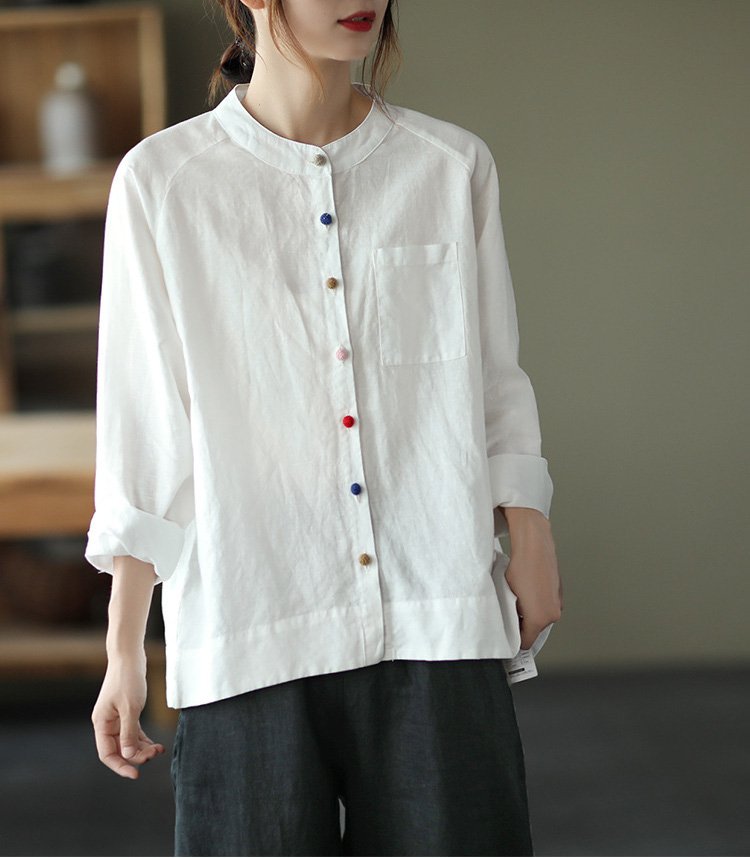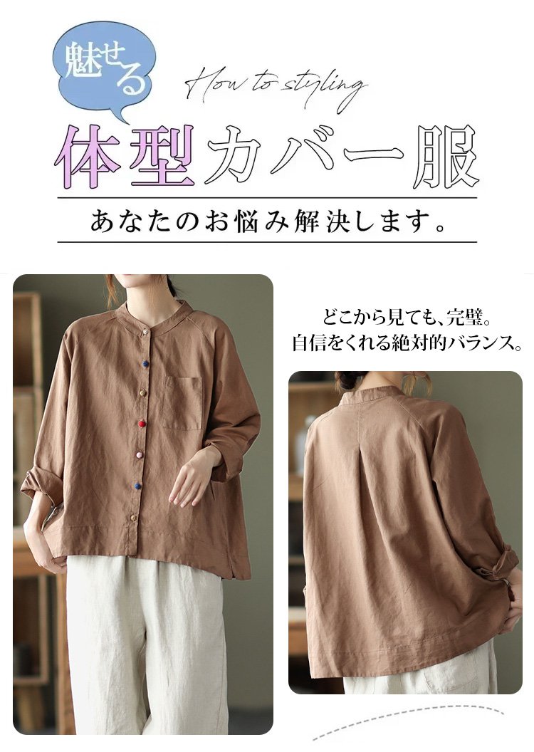 レトロ調綿麻ブラウス