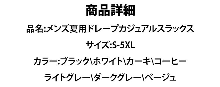 メンズ夏用ドレープカジュアルスラックス
