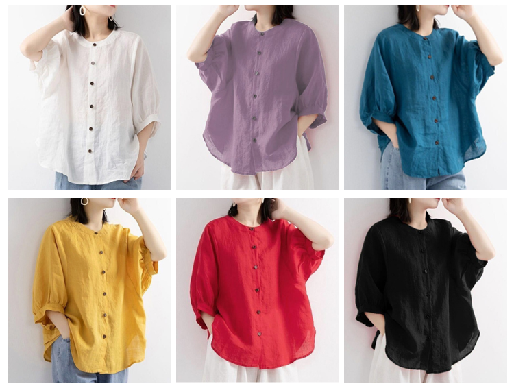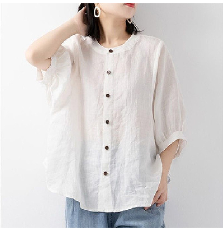 無地綿麻シャツ