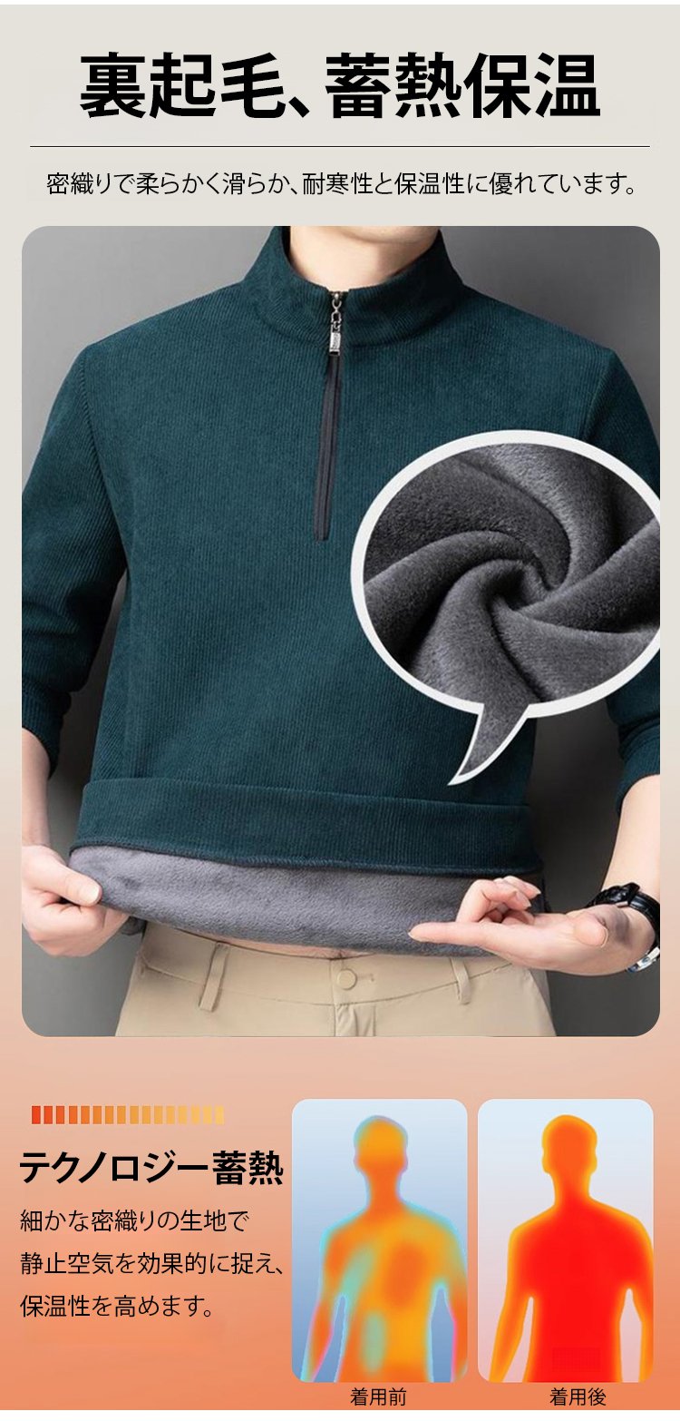 ハーフジップハイネック裏起毛スウェット
