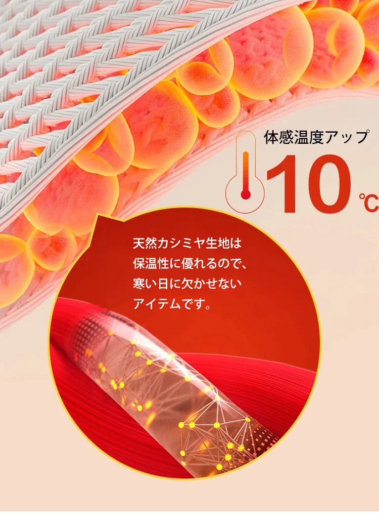 カシミヤ、防寒、軽い、肌に優しい、水洗い可能