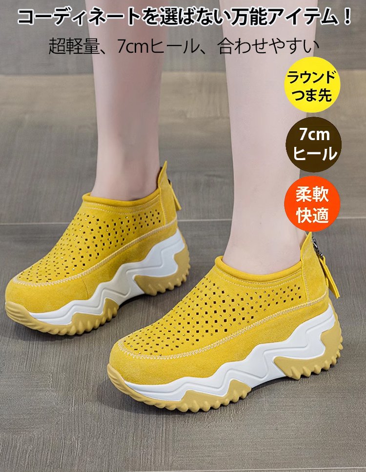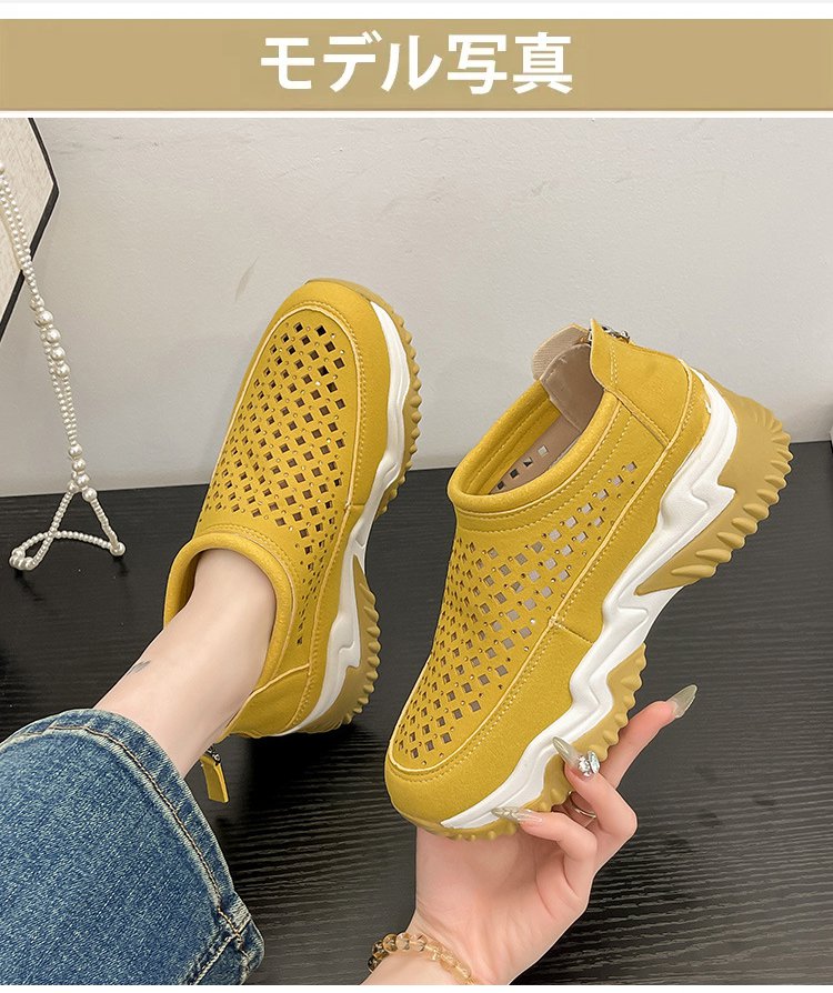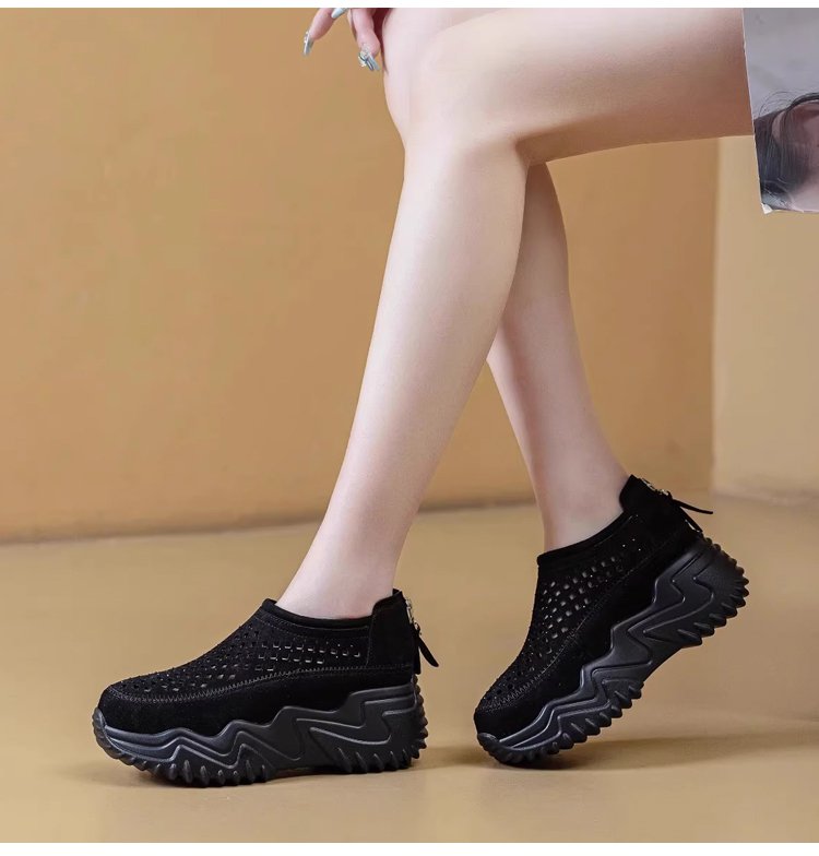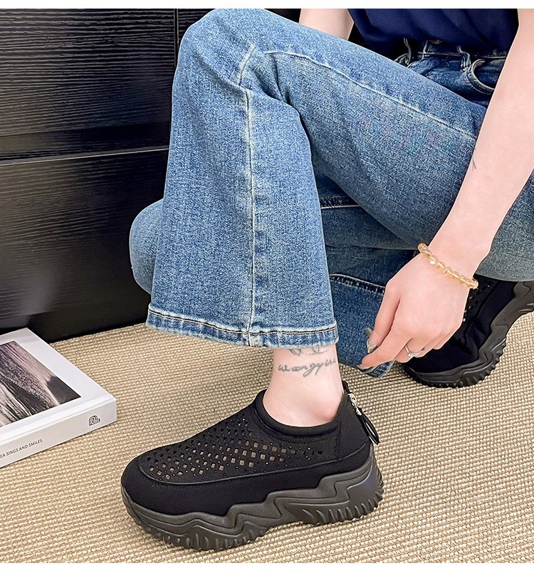 透かし彫りラウンドトウ厚底スリッポン