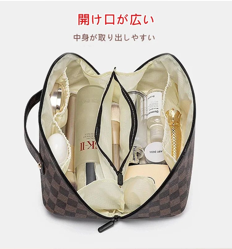 レトロ格子柄化粧ポーチ