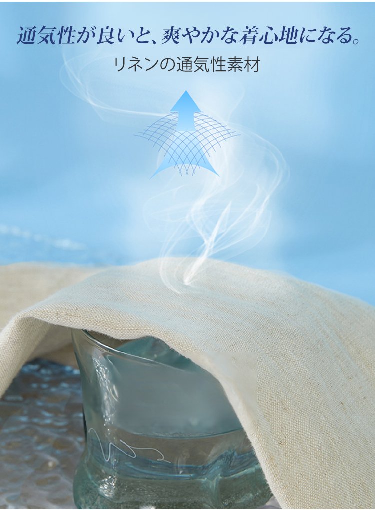 呼吸するコットンリネン!最高品質の綿麻と0.3mmハニカムファイバーで体温を26℃に保ち、快適な肌触りを実現。吸湿速度は2.8倍、紫外線を99%カット。