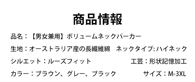 大きなフードと二重のハイネックで顔を隠せるので、街中でも誰にも気づかれません。男女兼用スタイルで快適でおしゃれソフトな肌触りと、しっかりとした風合いがあり、3D立体裁断で体型をカバーし、かっこよく見えます。